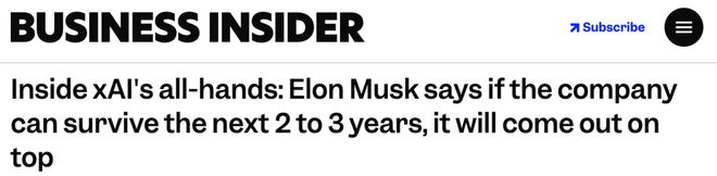 马斯克曾在2025年全员会议上强调,未来2-3年是xAI的关键期,要在AI赛场上争夺领先地位。