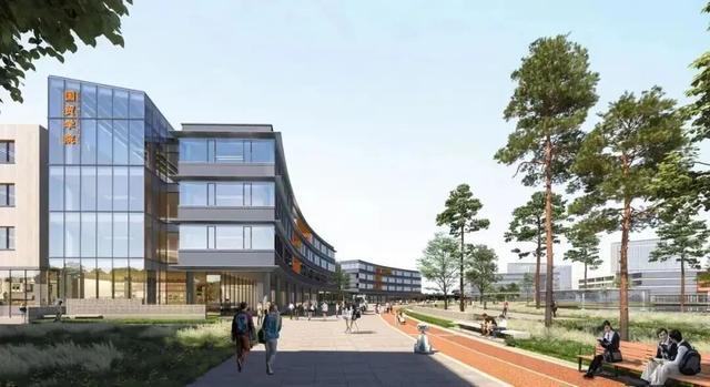学院整体占地面积约6.8万平方米,总建筑面积约37.2万平方米,共规划“1心2轴6区”。